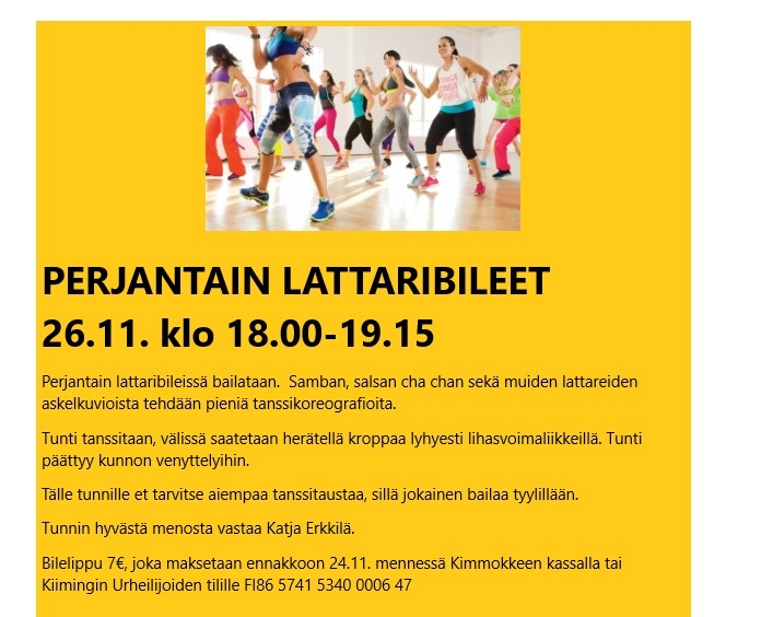 Perjantain Lattaribileet 26.11. klo 18.00-19.15