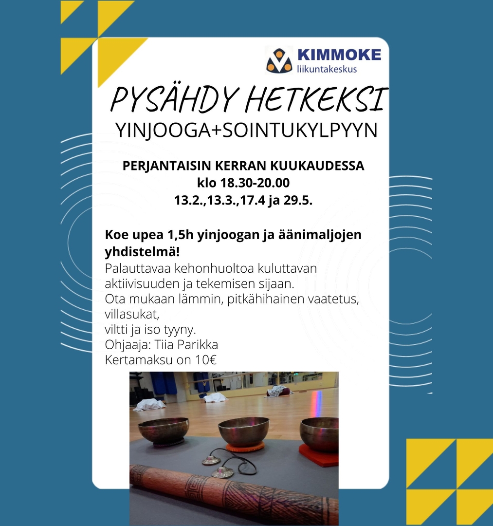 YINJOOGA+ SOINTUKYLPY kerran kuukaudessa klo 18.30-20.00. Seur. 13.2.