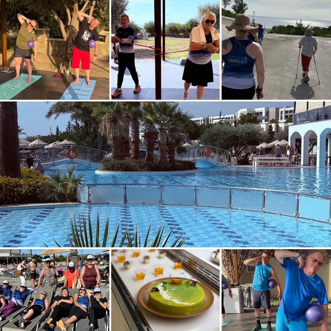 Tällä kaikille avoimella reissulla pääset nauttimaan kesästä vielä viikon ajan Rodoksen lämpimällä ja aurinkoisella saarella. Voit liikkua niin ohjatuilla tunneilla kuin omatoimisestikin. Molemmissa tapauksissa tämä viikon matka sopii sinulle mainiosti. Päivittäin on tarjolla monipuolisia ohjattuja lihaskuntotunteja, sauvakävelyä, pilatesta tai palauttavaa kehonhuoltoa hyvässä porukassa. Liikuntakeskus Kimmokkeen ohjaus takaa tehokkaat treenit ja hotellin puitteet pitävät huolen rentoutumisesta. Tämä kaikki (matkat, treenit, ruuat) 1499€