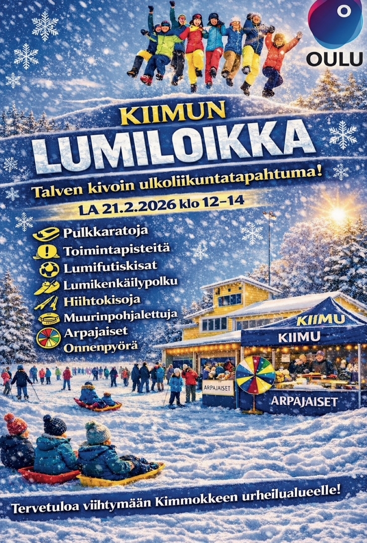 Tule viettämään liikunnallista talvipäivää yhdessä perheen ja ystävien kanssa LUMILOIKKAAN lauantaina 21.2. klo 12-14 Kimmokkeelle! Unohda ruudut hetkeksi ja nauti ulkoilusta, talviaktiviteeteista ja yhdessäolosta.